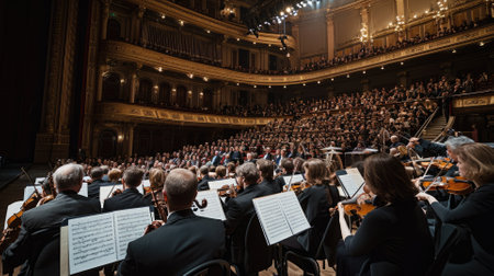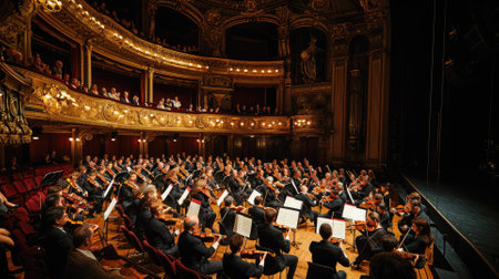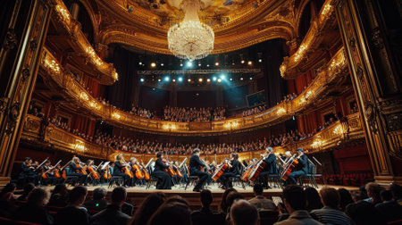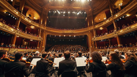 Captivating classical music concert with orchestra performing in a majestic historic theater