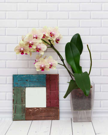 Blooming orchid with frame mock up