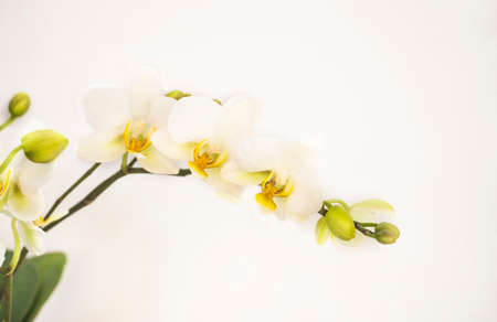 White opening phalaenopsis flowers (orchid) on light yellow background