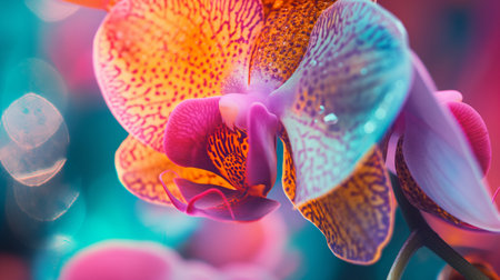 Captivating close-up of an orchid flower showcasing its stunning petals adorned with water droplets, embodying natural beauty and elegance perfect for various uses in photography and art.