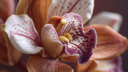 A captivating close-up view of an orchid flower revealing intricate patterns and soft colors. This image embodies beauty and elegance suitable for various design projects.