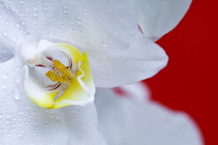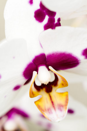 Fragment of a beautiful white-purple phalaenopsis orchid flower, known as fluttering butterflies. Macro