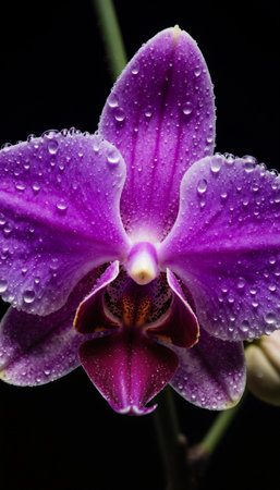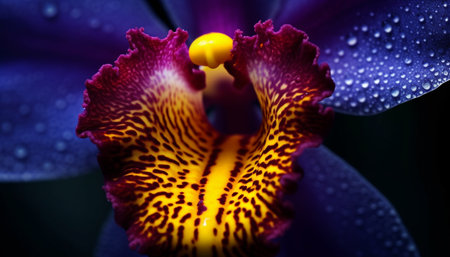 Purple orchid petal, wet with dew drops generated by artificial intelligence
