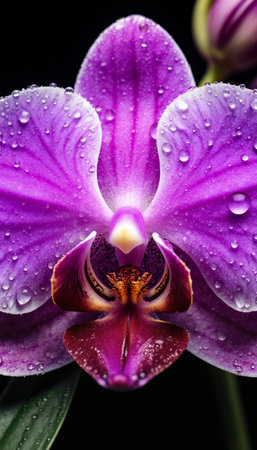 This close-up image captures a stunning orchid flower showcasing its vibrant petals and intricate details, celebrating nature's beauty and elegance.
