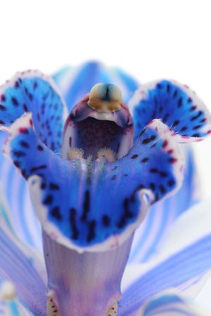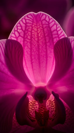 Macro image of an orchid, emphasizing its unique patterns and velvety petals