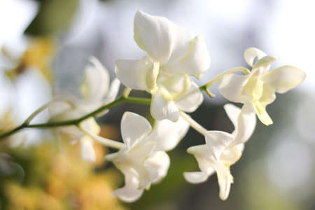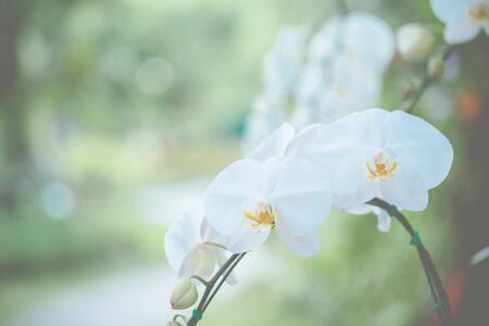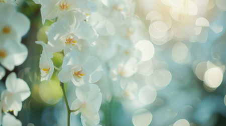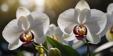 Orchid blossoms in soft sunlight, delicate beauty. Nature and tranquility concept