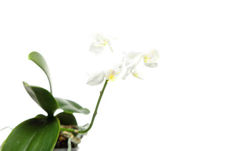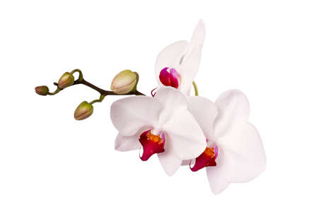 Beautiful Phalaenopsis orchid flower starts blooming isolated on a wihte background.