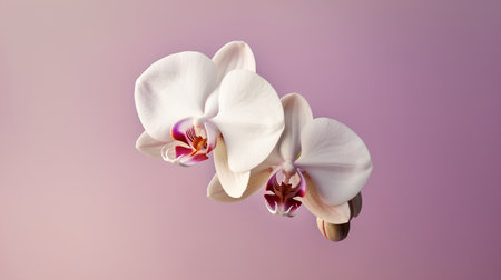 Beautiful White orchid flowers on a pastel pink background top view , copy space
