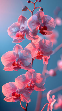Pink Orchid Flowers Against a Soft Blue Background with Gentle Lighting