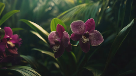 Orchid blossoms in soft sunlight, delicate beauty. Nature and tranquility concept