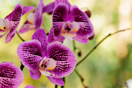tropical beautiful purple orchids close up on summer day