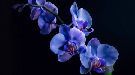 Beautiful blue orchid flowers on black background. Studio shot.