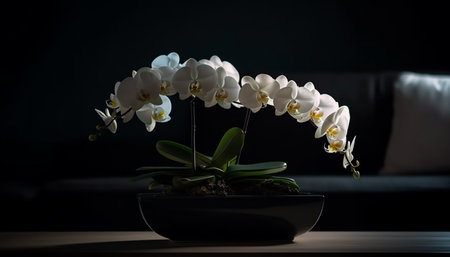Elegant orchid in vase brings freshness indoors generated by artificial intelligence