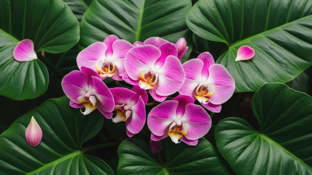 AI Generated. Lush Tropical Orchid and Greenery Living Wall