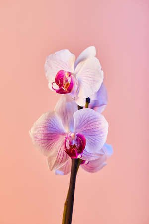 Flowers orchid Phalaenopsis white flowers with pink veins and core on pink background