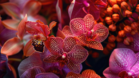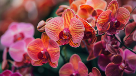 Close-up shot of vibrant orchids in full bloom, showing their intricate details and beautiful colors, perfect for nature and floral themes.