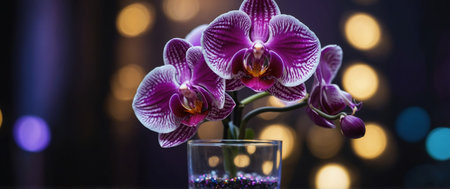AI Generated. Purple orchid in a glass vase with colorful lighting