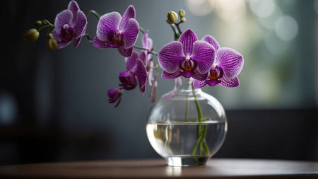 AI Generated. Purple orchid in a glass vase with dramatic lighting