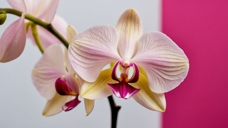 Vibrant Pink Orchids Displayed Elegantly Against a Minimalist White Background