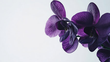 Purple orchid flowers on light violet with space for design