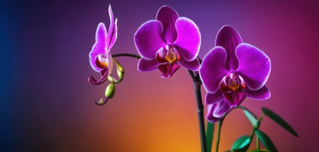 A stunning close-up of a vibrant orchid flower set against a beautiful gradient background, showcasing the intricate details and colors of nature's beauty.