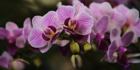 Beautiful pink orchids blooming in a lush garden during spring season