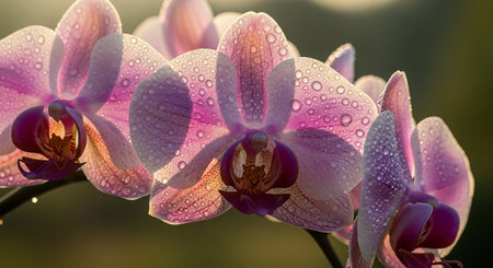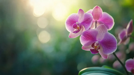 Orchid blossoms in soft sunlight, delicate beauty. Nature and tranquility concept