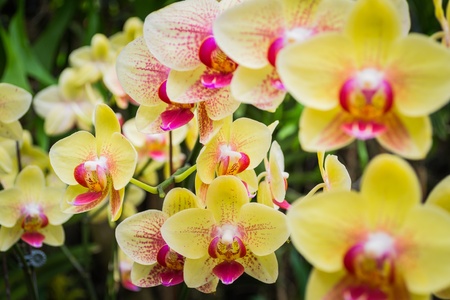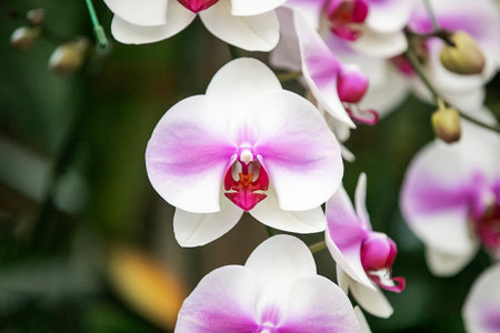 Beautiful orchid flowers in botanical garden.