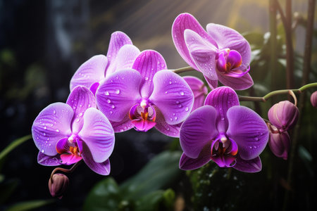tropical beautiful purple orchids close up on summer day
