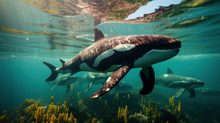 An AI generated illustration of a killer whale swimming in its natural habitat