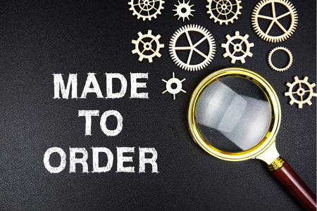 Made to Order text written on notepad with calculator and alarm clock on pink background