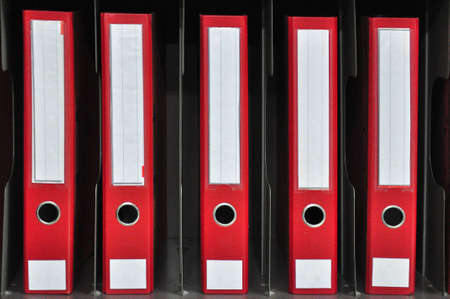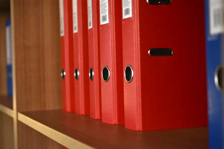 Office red folders on the shelf in the office