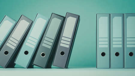 Falling ring binders on a shelf, data management and storage concept