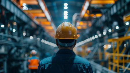 Engineer wearing hardhat at industrial plant