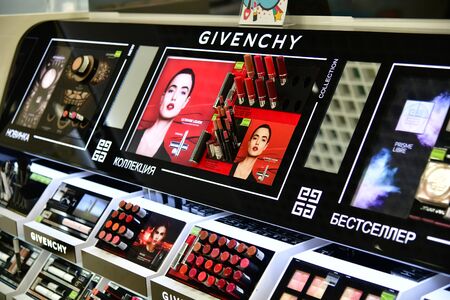 Sochi, Russia - June 2. 2018. The lipstick and pencils from Givenchy in Sun City mall
