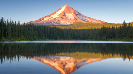 Mount. Hood reflection in Trillium lake, Oregon, USA. Beautiful natural landscapes