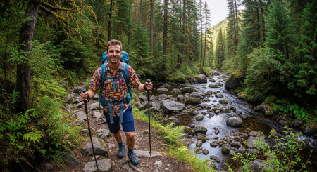 Panorama of South Fork of the hoh River Trail in Olympic
