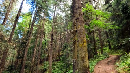 wild green woods in mountains - touristic ground walk - photo of nature