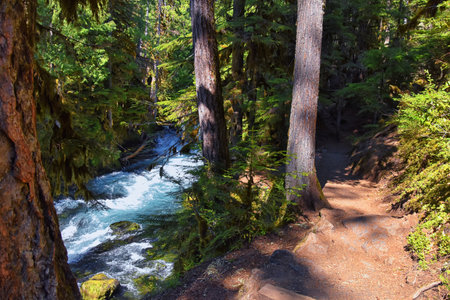 Sahalie Koosah Tamolitch falls hiking trail on McKenzie river, Williamette National Forest, Cascade Mountains, Oregon. USA.
