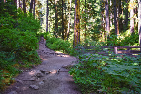 A beautiful shot of a forested hiking path