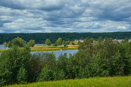 village near lake. Landscape of the village with beautiful views of the forest and lake