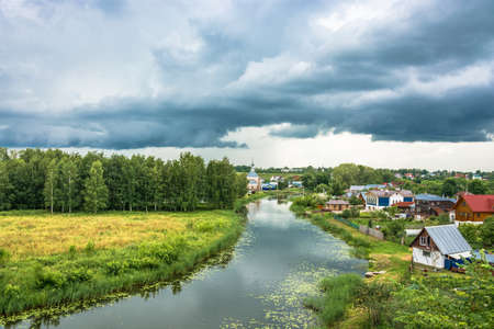 Beautiful landscape in the ancient city of Suzdal on a summer cloudy day, Russia.