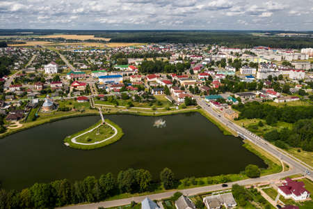 Aerial view Russian small town. Belarus. Voronovo.