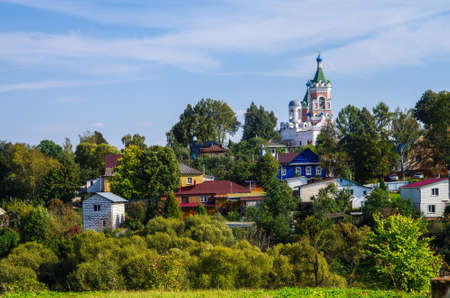 Orthodox church near the river, summer day in Russian town Borovsk