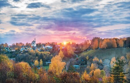 Autumn view of Borovsk at sunset, Kaluga region, Russia.