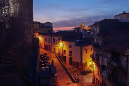 Dark street (that's the real name, in portuguese; Rua escura) in Porto illuminated at sunset (Portugal).