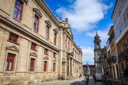View at the San Augustin church in the streets of Santiago de Compostela. Santiago de Compostela is the capital of the autonomous community of Galicia, in northwestern Spain.