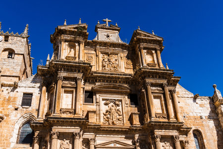 Facade with reliefs of Saint Mary the Bigger, basilica and church, of plateresque style, in Pontevedra city