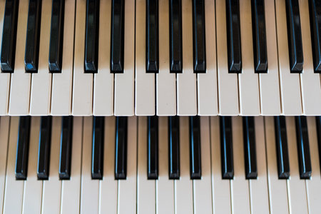 Organ instrument keyboard in black and white