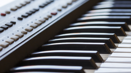 part of synthesizer keyboard closeup